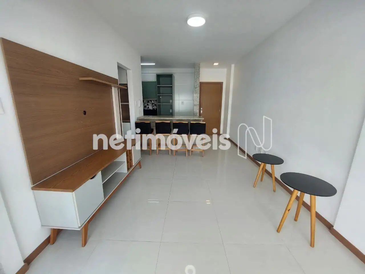 Sala com piso em porcelanato.