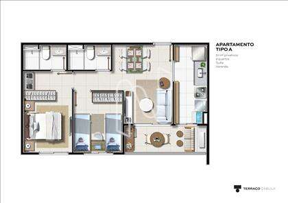 Diversas opções de plantas para a sua futura moradia, apartamento de 1 a 3 quartos com opções de garden, com metragens indo de 51 a 73,74 m² ideal para você e sua família.