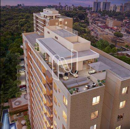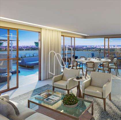 O empreendimento conta com diferenciais como o seu rooftop com vista privilegiada para a reserva natural, além do mar no horizonte.