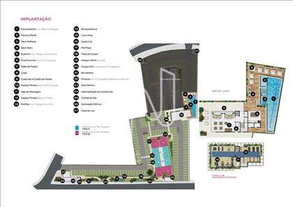 Piscina adulto, piscina infantil, deck molhado, deck seco, solarium, área gourmet, churrasqueira, salão de festas, academia, rooftop, brinquedoteca, coworking, pet place, pista de cooper, playground, espaço zen, bicicletário, portaria 24 horas, delivery, sala de massagem.